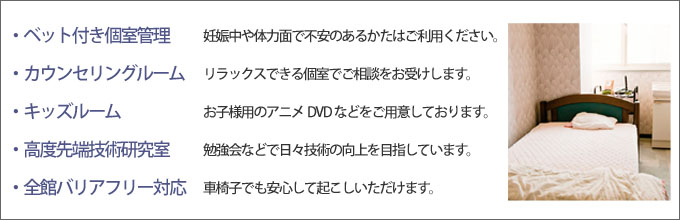 当診療所では、すべての患者さまに快適に治療を行っていただくために、清潔でリラックスできる |