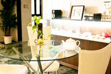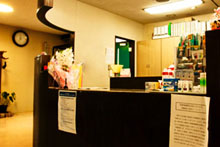木のぬくもりを感じる受付(フロント)とリラックスできる待合室。 |