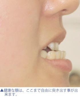 下顎頭の運動範囲が狭いと前歯で甘噛みも出来ず麺がすすれ ない、奥歯で食べ物をペースト状に出来ず無理やり飲み込む から、消化が悪くなりいつも胃に不快感がある等の症状が出 る場合もあります。